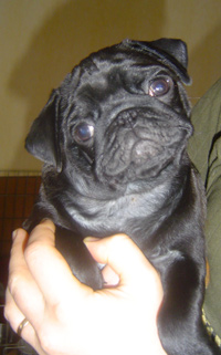 On the 26 of August Darcy was showed at the Finnish Pug Special in Helsinki. Nearly 80 pugs was announced for the breed specialist Nancy Tarbitt, GB. Darcy was the winner of the open class and was placed as BH-3 with res-cert. The picture to the right, 8 month P Maxwell House owner Päivi o Risto Kennel Vilway´s, got an "excellent". A great thanks to Monika Kevin for all the good "service and consideration", furthermore Birgitta and Erika for the good care with Darcy during the long trip. |